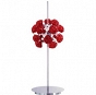 Dekoracyjna lampa stołowa Shiraz występuje w serii ekskluzywnych opraw. Wyjątkowo oryginalna - na metalowej, chromowane kuli osadzone są szklane róże wykonane z lanego szkła oraz 10 gniazd do żarówek G4 podświetlających całą kompozycję.
