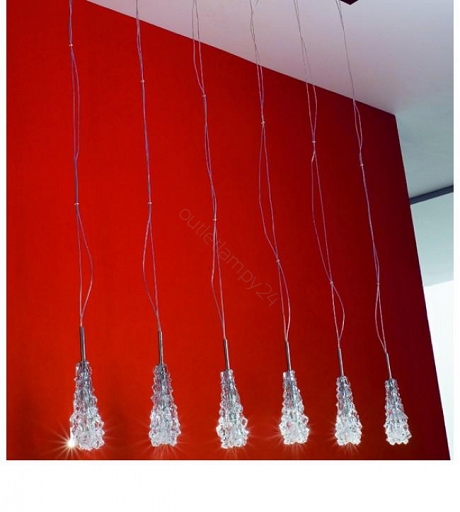 Dekoracyjna lampa wisząca, element rozbudowanej serii Subzero. Seria zaprojektowana w związku z nieustającą modą na kryształowe oświetlenie - tutaj szkło zastosowano jako ekscentryczny klosz w kształcie smukłej szyszki kryjącej halogenową żarówkę. Szklany element z lanego szkła w kształcie dużej szyszki zaprojektowano do kilku konfiguracji tworząc wysmakowaną kolekcję. Subzero - modne oświetlenie nad stół.