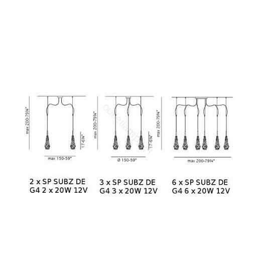 Żródło światła: 6 x G4 20 W 12 V - transformator w podsufitce