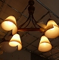 Konika - klasyczna lampa wisząca w formie niewysokiego żyrandola, produkcji włoskiej firmy Evi Style specjalizującej się w klasycznym oświetleniu .Lampa doskonale prezentuje się centralnie oraz nad stołem,ma kształt podłużnej ramy, do której podpięte są fantazyjne klosze, nie jest w kształcie okrągła ! Duża dbałość fabryki o jakość i zastosowanie elementów dekoracyjnych. Piękne alabastrowe szkło wspaniale kontrastuje z brązem stelaża.
