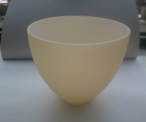 Klosz w formie dużego kielicha krajowej produkcji. Szkło malowane.Kolor ciemny kremowy,półmatowy.Estetycznie wykonany na krawędziach.